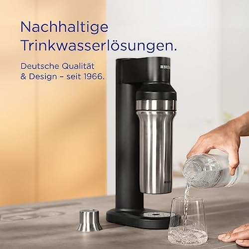 - Lieferumfang: 1x sodaTRIO schwarz Wassersprudler, 1x premium Glasflasche (1l), 1x Edelstahlflasche schwarz (0,65l), 1x Flaschenadapter, 1x original BRITA CO2-Zylinder